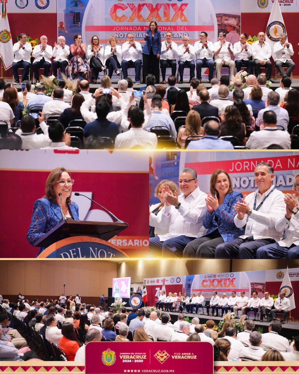 “Damos la bienvenida a Veracruz a todos los notarios de México en su Jornada Nacional, quienes aportan confianza jurídica a nuestra sociedad. En mi gobierno y el de la presidenta @Claudiashein reafirmamos nuestro compromiso con un futuro justo y transparente. ¡Éxito y disfruten!”, publicó Nahle en su cuenta de X, acompañada de una fotografía del auditorio lleno y banderas de los 32 estados. El evento, que se realiza por primera vez en la entidad desde 2018, reúne a más de 800 fedatarios bajo el lema “Notariado Digital: Certeza para el Siglo XXI”.
