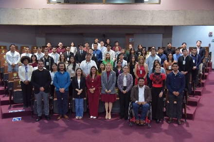 En el auditorio Sebastián Lerdo de Tejada, la presidenta de la Mesa Directiva, diputada Naomi Edith Gómez Santos; la diputada Ivonne Selene Durán López y el diputado Omar Edmundo Blanco Martínez, presidenta y secretario, de la Comisión Permanente de Juventud y Deporte y Atletas con Discapacidad, respectivamente, y la encargada del IVJ, Daisy Mariana Núñez Islas, dieron la bienvenida a las y los 50 participantes.